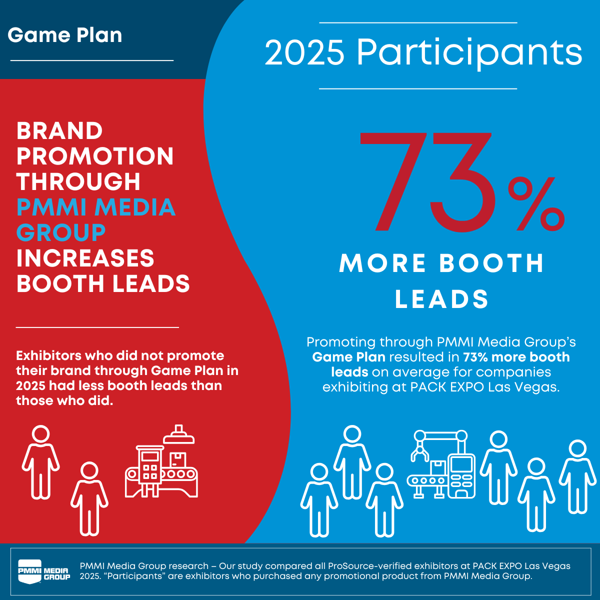 A recent analysis of booth leads from PACK EXPO Las Vegas 2025 found that exhibitors who participated in Game Plan had 73% more booth leads (on average) than those who did not participate.